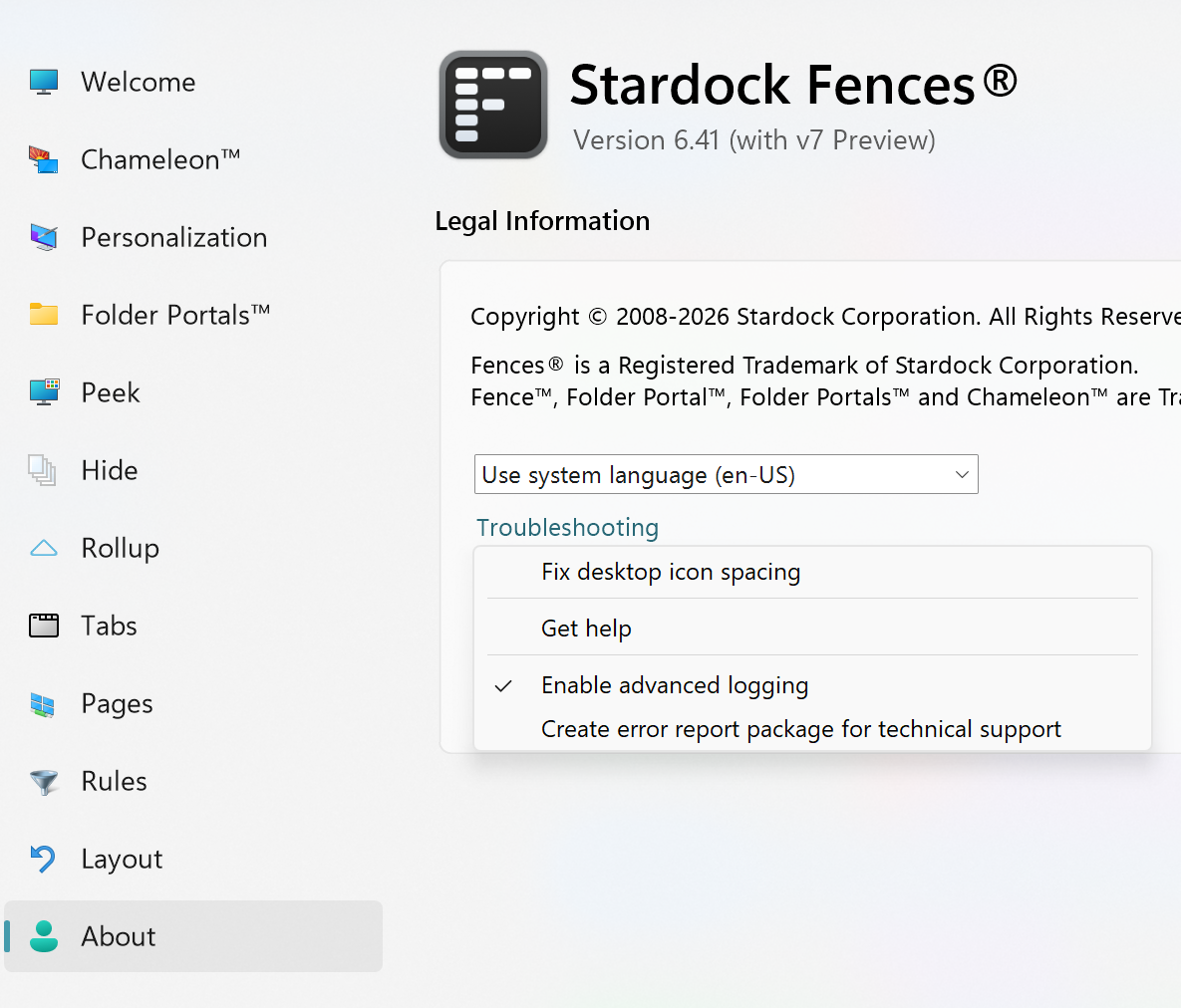 Fences: 6.20 , Windows: version25H2(OS intern version 26200.7840)